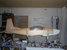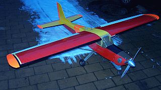 Endlich steht sie nun auf der Werkbank, die grosse PC 7 (richtig wäre ja der PC7). Als ich den Flieger bei Walter abholte merkte ich erst beim Einladen welche Ausmasse dieses Gerät hat, einfach gigantisch. Zunächst ist’s nur ein Rohbau, zur Fertigstellung gehen sicher noch einige Wochen/ Monate ins Land. Zunächst müssen erstmal alle Teile (RC, Fahrwerke usw.) geordert werden. Beim Fahrwerk bleibt die Frage : welches ? Vorgesehen ist ein festes Fahrwerk mit 5 mm Federstahl fürs Hfw. und ein 2-schenkl. Bugrad. Aber ich liebäugele mit einem Giezendanner EZFW, das dem Flieger doch mehr scale aussehen lässt. Den Motor dafür, einen 30 ccm MOKI, habe ich ja bereits. Dieser sollte mit dem , von der Grösse her, leichtgewichtigen Flieger spielend fertig werden. Für den Cockpitausbau müssen noch 2 Instrumententräger hergestellt werden und zumindest ein Pilot besorgt werden. Die Farbgebung wird die gleiche sein wie beim kleinen Bruder (s.o.), die Kennung wird dann, wie im richtigen Leben, die D-FFMT sein.