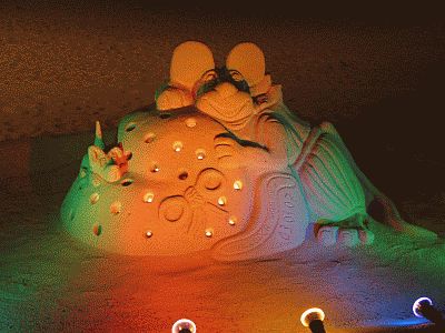 Die beiden Bilder unten zeigen Kunst aus Sand, gebaut in 5-6 Stunden! Am Morgen ist leider kaum noch was übrig davon